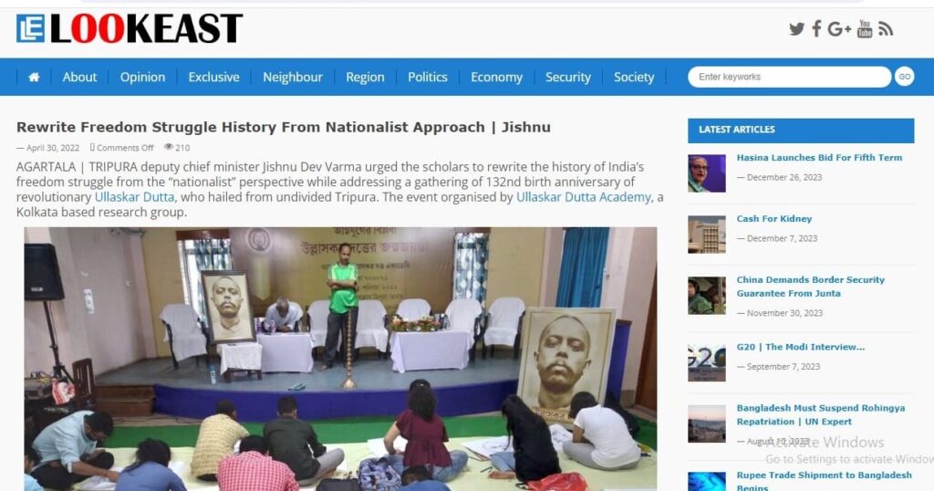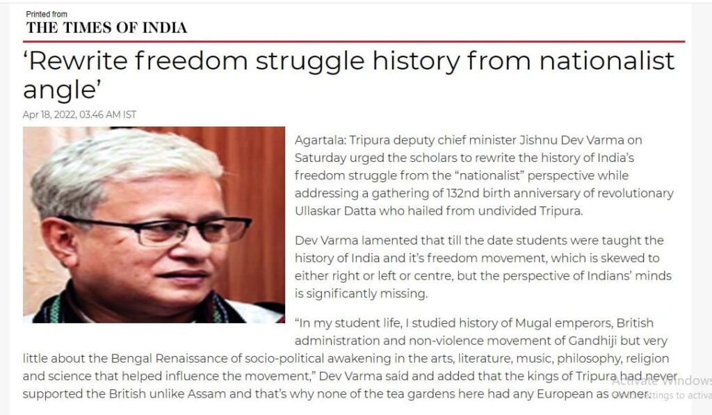 “Is there any contribution of Tripura in India’s Independence movement or is it that we fail to remember people like Shanti Bhushan Nag, who was a disciple of Master-da Surya Sen, deserve a special mention in our history books ?”